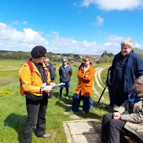 A group of Hardy enthusiasts enjoyed a walk around Wareham to explore the literary connections to Hardy’s Anglebury and the ancient history of the town. Wareham, which sits at the entrance to the Isle of Purbeck on the meandering rivers Frome and Piddle is a picturesque Dorset town steeped in heritage.