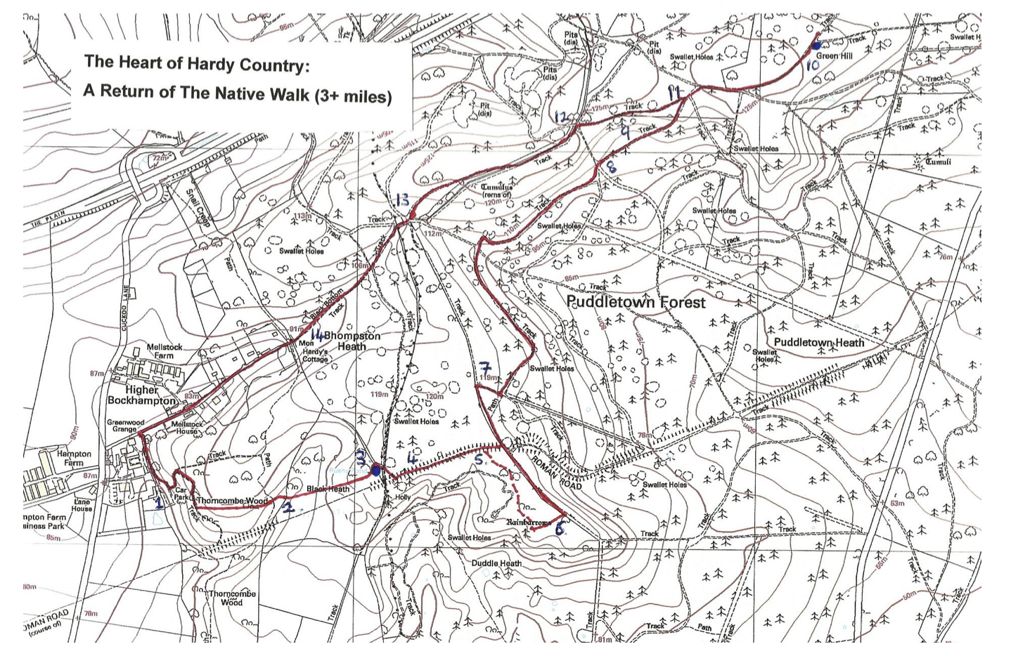 To fully appreciate the atmosphere – the true solitude - of Egdon Heath set out on this walk at daybreak or as dusk is falling. If pursuing the latter allow for the fact that the walk will take you roughly 60-90 minutes to complete.
